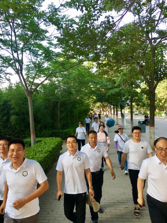 下午四点三十分,学院教职工从学院楼前广场出发,沿着双兰路,按顺时针方向,途径中州东路、中州南路、文澜路、镜如湖,最后返回学院楼前广场。老师们个个精神饱满、热情高涨、步伐矫健,一路上欢声笑语、你追我赶,行走于天然“氧吧”间,充分感受到了在美丽的河大校园里运动的舒适和惬意。