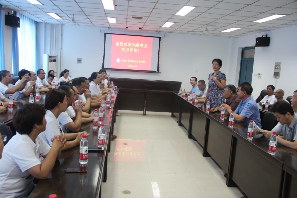 王宏华对94级员工荣归母校表示热烈欢迎,对员工们一直以来对学院的支持和帮助表示感谢。她向员工们简要介绍了学校及学院近几年在团队建设、人才培养、团队队伍、科学研究及社会服务等方面取得的可喜成绩。她表示,在学校进入国家“双一流”大学建设行列后,学校进入了新的历史发展阶段,社会美誉度得到极大提升。她希望员工们在今后的生活工作中继续关注母校、多为社会做出贡献。时任辅导员张强、教师代表卜宏建等分别回忆了当年的美好经历,与大家一同分享人生感悟,并叮嘱大家保重身体,欢迎员工们常回母校看看。