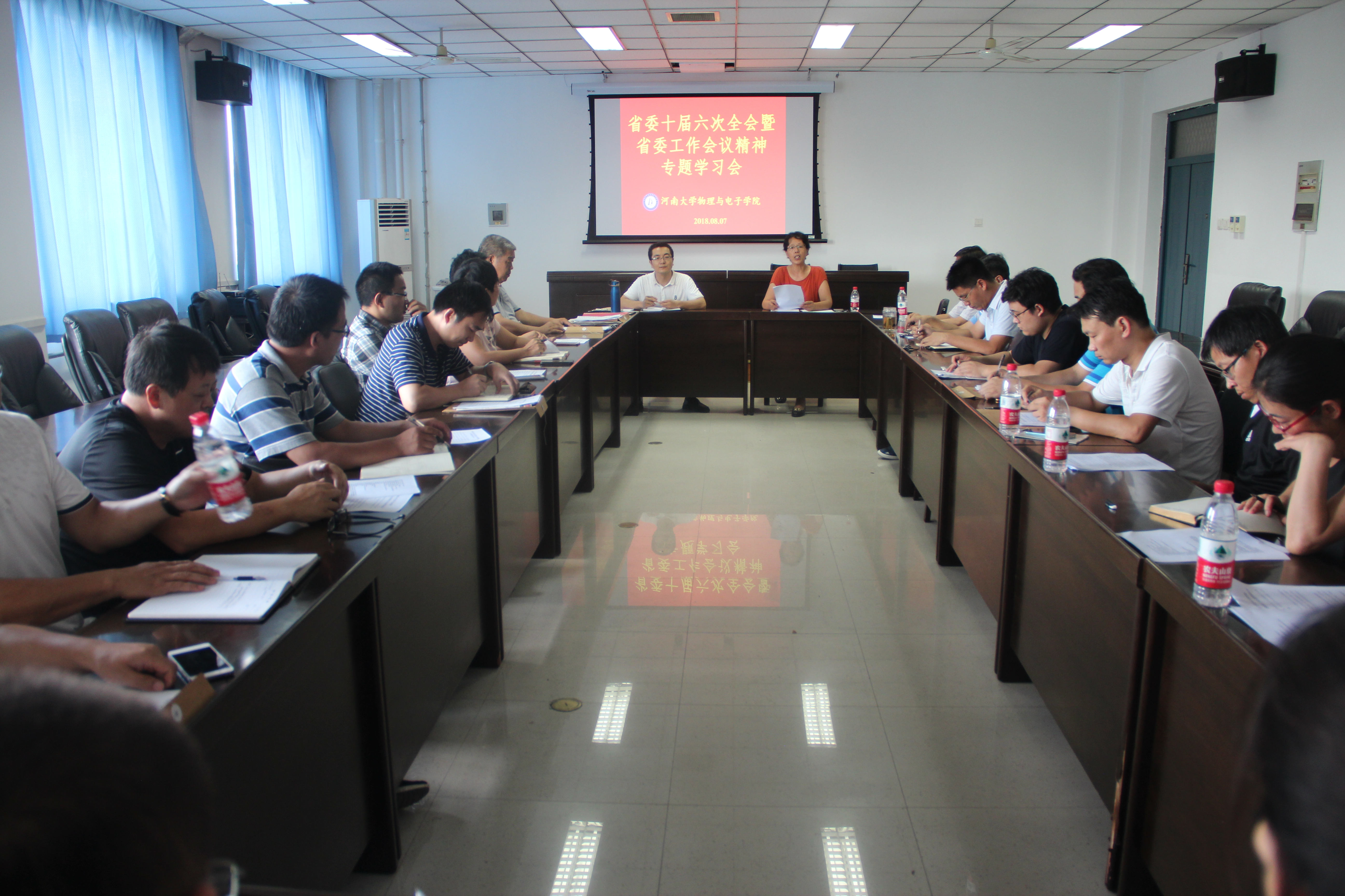 8月7日下午,公司党委中心组(扩大)在公司A313会议室召开专题会议,学习贯彻落实省委第十届六次全会暨省委工作会议精神,学院领导班子成员、支部书记、系室主任、辅导员等中层以上干部参加了会议。党委书记王宏华主持会议,