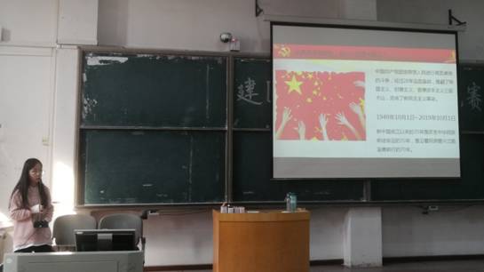 最后,党员代表和入党积极分子代表用PPT等形式汇报了自己学习习近平新时代中国特色社会主义思想的成果,和同学们分享了学习的心得体会。