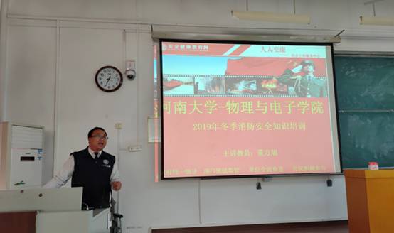 为加强冬春季节火灾防控工作,预防和遏制火灾事故发生,12月19日,必赢242net“2019年冬季消防安全知识培训”在金明综合楼2201教室召开。本次知识培训由河南省消防协会消防宣传与服务中心教员主任董方旭主讲,学院全体教师和部分员工代表参与了本次培训。