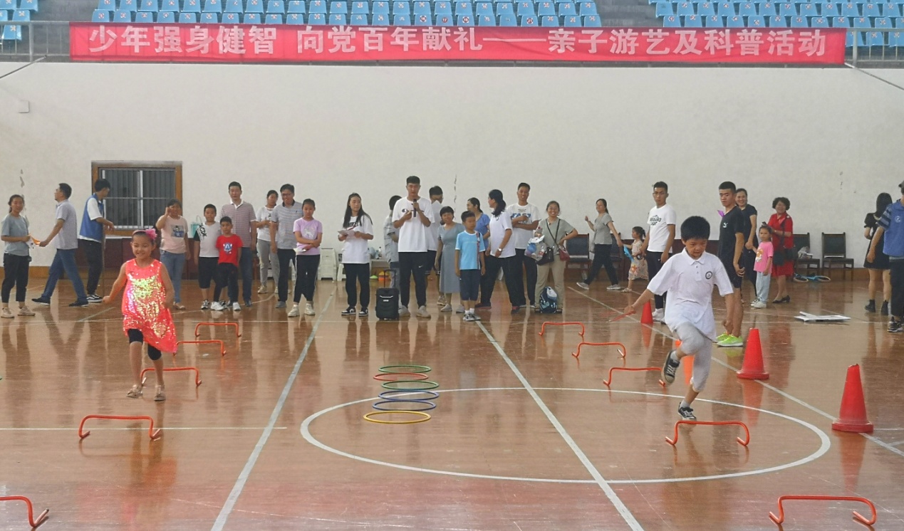 6月6日上午,在必赢242net官网体育学院篮球馆,物理电子学院、体育学院联合举办以“少年强身健智 向党百年献礼”为主题,“身体活动”与“大脑启智”相结合的亲子游艺活动。两个学院相关领导、教职工及其子女100余人参加亲子活动。