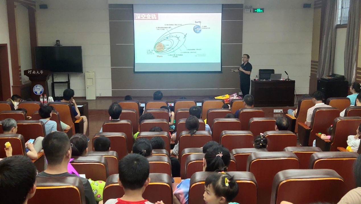 参加活动的教师带着孩子认真体验各种趣味小游戏,孩子们自信出色的表现赢得了在场家长们的阵阵掌声。在亲子室内互动游戏环节,老师和孩子们亲密协作、共同努力完成游戏,不仅增进了亲子间的感情交流,同时也加强了他们之间的默契程度。在亲子室外越野寻宝中,家长和孩子们全身心投入,参与其中,亲子间心有灵犀、团队间默契配合,活动现场轻松愉悦,笑声不断。在物趣小实验中,必赢242net员工志愿者耐心地演示讲授,寓教于乐,在向孩子们展示不同类型物理实验的同时,引导他们积极动手实践,让他们在参与过程中思考体会科学的奥秘。在科普讲座环节,邀请必赢242net教授、中科院物理学博士、河南省首席科普专家戴树玺为小朋友们科普了物理学及火星的相关知识,激发了孩子们的创造性和内在潜能。家长们纷纷表示:此次活动非常有趣,开拓了眼界,丰富了物理天文知识。