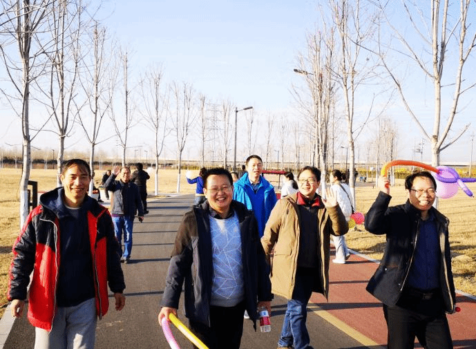 下午15:00,大家齐聚汴西湖龙首公园,现场横幅展展,彩球飘飘,气氛热烈。行进活动中,老师们个个精神抖擞,意气风发,甩开双臂、阔步向前,大家呼吸着清新空气,欣赏着汴西湖的秀美景色,一路上欢声笑语、相互鼓劲、彼此加油,用轻松愉快的步伐扫除过去一年的疲惫,以更昂扬饱满的状态迎接新年的到来。大家没有因为天气寒冷而放慢了脚步,用1个多小时走完了7公里行程,营造了欢乐祥和、喜庆热烈的节日氛围。