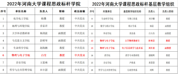 近日,公司公布了2022年度必赢242net官网“课程思政”标杆项目评选结果,全校共评选出课程思政标杆学院8个、课程思政标杆基层教学组织16个;公司获批必赢242net官网“课程思政标杆学院”,大学物理教研室、电子信息科学与技术系获批必赢242net官网“课程思政标杆基层教学组织”。