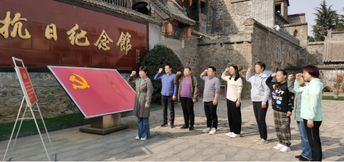 豫西抗日根据地纪念馆坐落于革命老区巩义市新中镇柏茂庄园内,是河南省重要的爱国主义教育基地,抗日战争时期,曾是豫西八路军一支队司令部和豫西行政专员公署所在地。大学物理教工党支部全体党员跟随讲解员的引导,深入多个展室,详细了解了皮定均司令生平事迹以及八路军豫西抗日独立支队带领豫西抗日根据地军民同仇敌忾、浴血奋战的历史。展馆陈列的历史照片和资料,将大家带回到那个艰苦卓绝的峥嵘岁月,深刻感受共产党人的初心和使命。参观结束后,在豫西抗日根据地纪念馆前,支部书记康缈带领全体党员重温入党誓词。