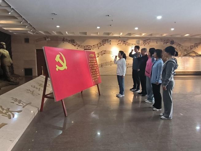 当日下午,物理实验中心教工党支部来到全国首批国防教育示范基地、河南省爱国主义教育示范基地、河南省廉政教育基地——信阳市鄂豫皖革命纪念馆参观学习。纪念馆按时代顺序陈列展览,以上千幅文字图片和数百件实物对应的方式,全面展示鄂豫皖革命根据地形成、发展和不断壮大的过程,着重介绍了从大革命时期到解放战争时期各个历史阶段发生在鄂豫皖大地上的重大历史事件。深入翔实的文字和令人震撼的实物引领大家又穿越回到那个艰苦卓绝的峥嵘岁月,共同感受鄂豫皖革命根据地的光辉革命历史。参观结束后,在纪念馆内的烈士雕像前,支部书记魏凌带领全体党员重温入党誓词。