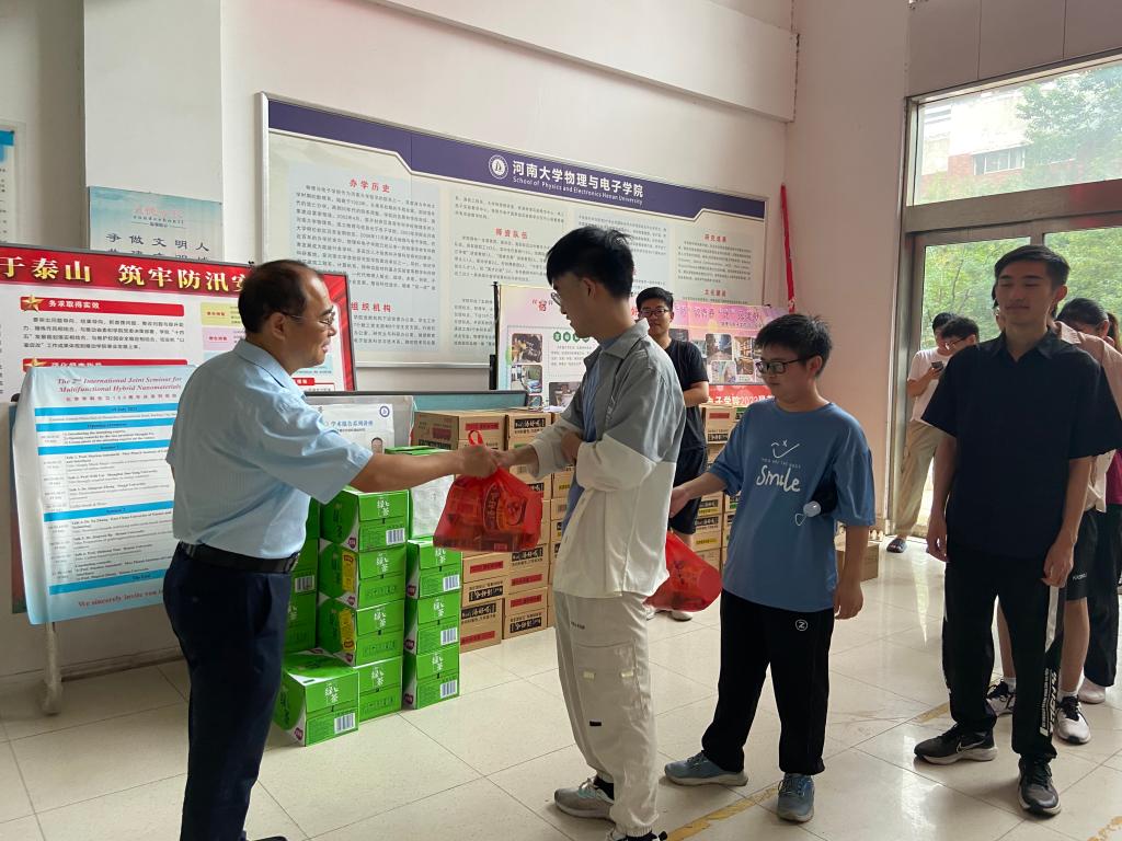 公司领导老师为留校员工发放精心准备的“防暑降温大礼包”,每份大礼包内包括绿茶、花露水、火腿肠等物品,寄托着学院对留校员工的深切关怀与殷切期望。院领导叮嘱员工们:严格遵守校规校纪,做到有事离校要履行请假手续;提高自我保护意识,主动了解掌握自然灾害预防、自救常识,注意宿舍用电安全;主动关心同宿舍同学,注重防暑降温;随时保持信息畅通,遇到困难及时与导师及辅导员沟通联系。院领导老师的关心和问候给炎炎夏日里的留校员工送去了一缕清凉,让他们充分感受到了学院的关心和爱护。同学们纷纷表示要更加珍惜暑期留校时光,以积极的心态、健康的体魄投入到暑期的学习生活中,努力充实自己。