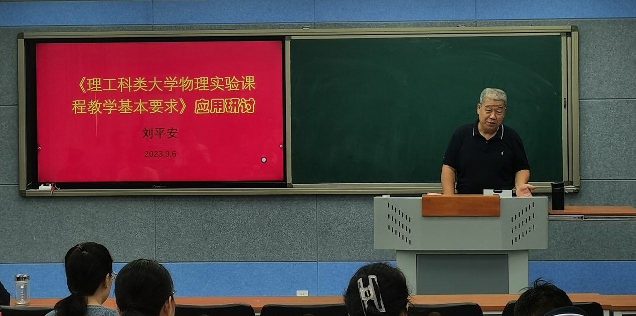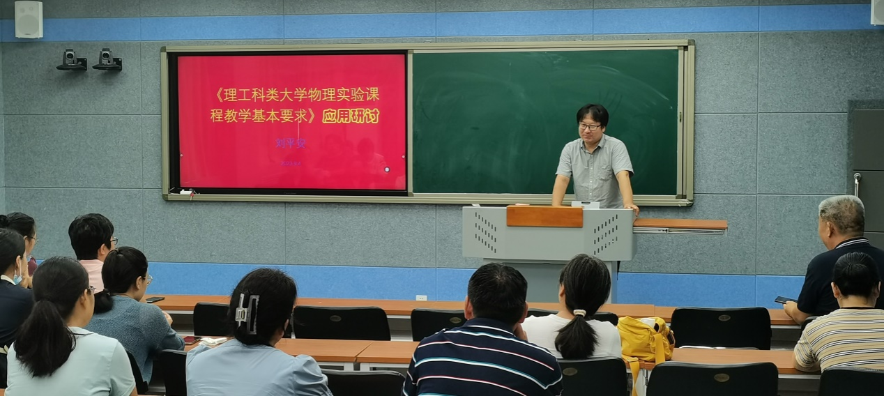 为深入理解教育部颁布的《理工科类大学物理课程教学基本要求》(2023版),紧密结合新时代科技创新的特征与高素质人才培养的需求,完善实验项目设置和分层次教学内容的遴选,进一步推动大学物理实验教学质量的提高,提升大学物理实验在创新人才培养中的地位,9月6日上午,普通物理实验教学中心在学院C-201举办了《理工科类大学物理实验课程教学基本要求》解读及应用研讨会。副经理刘名果、普通物理实验教学中心支部书记魏凌、主任刘平安与20多名大学物理实验指导教师出席会议。