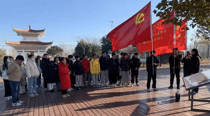 上午9点,大家抵达活动第一站兰考县东坝头,聆听了讲解员生动讲解的黄河知识,深刻了解了“三害”形成的原因。党办负责人李瑞光和通信工程党支部书记张婷,结合焦裕禄同志的迎难而上和敢于担当的品质,开启了本次党日活动的主题学习。