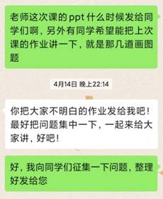 由于网上授课的特殊性,老师与同学们的交流变得不那么方便,这时课代表就显得尤为重要。为了更好地学习知识,同时为老师和同学们在特殊时期搭建起沟通的桥梁,我主动担任了张一民老师的车辆制造工艺的课代表,把同学们在上课过程中遇到的问题反映给老师,同时把老师的想法传递给同学们,加强了老师与同学们的沟通交流,提高了课堂效率,同时,这份课代表的责任感也促使我不断努力向前。(图三)